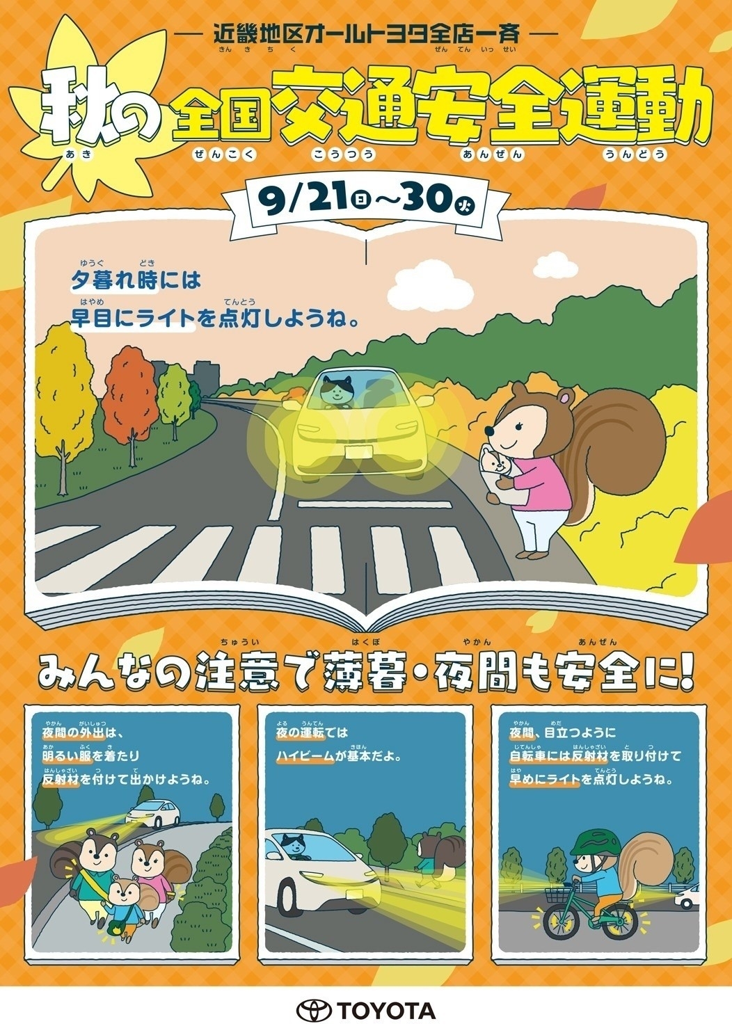 秋は日が暮れるのが早く、事故が増えやすい季節です🚨