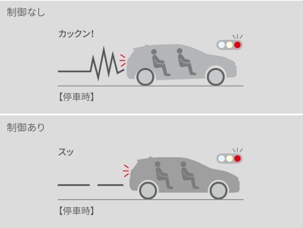 ブレーキを踏み、停止する直後の揺れ動きを抑えます。