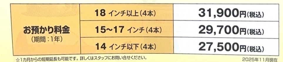 タイヤの置き場所・保管方法にお困りではないですか❔【タイヤ預かりサービス価格改定のお知らせ】