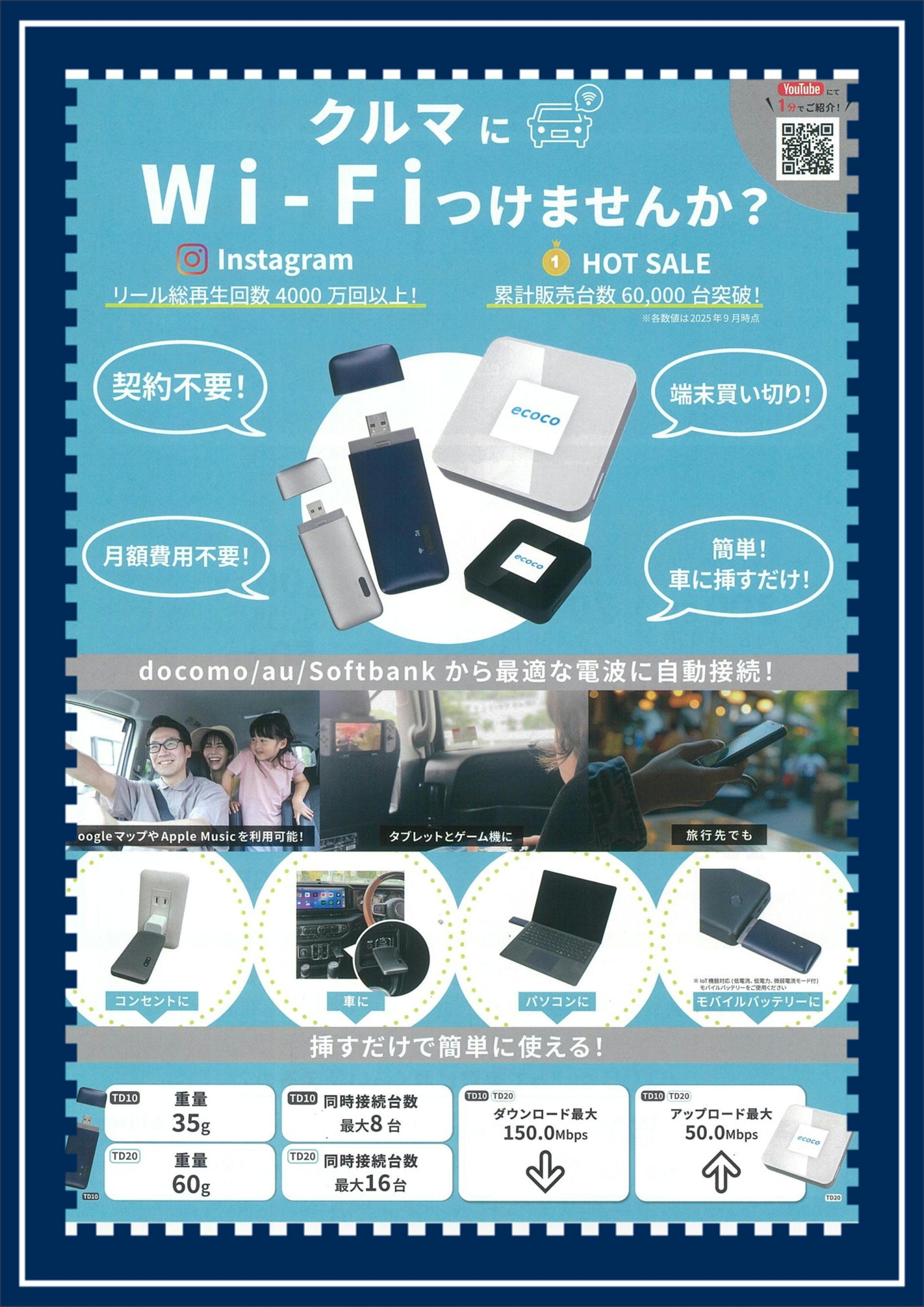 そんなお出かけにぴったりの❝車載Wi-Fi❞をご紹介します☆
