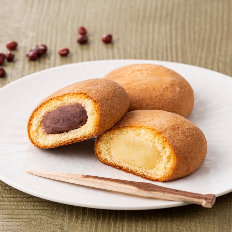 卵たっぷりのふっくら生地で、北海道産小豆を使用したこしあんと、