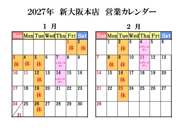 4月からの営業カレンダーはこちら