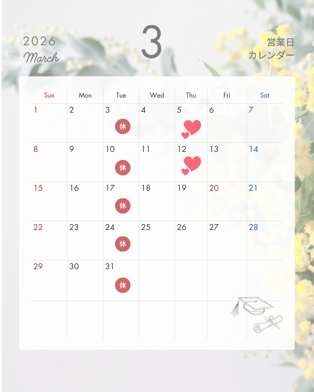 3月のご案内です🌸