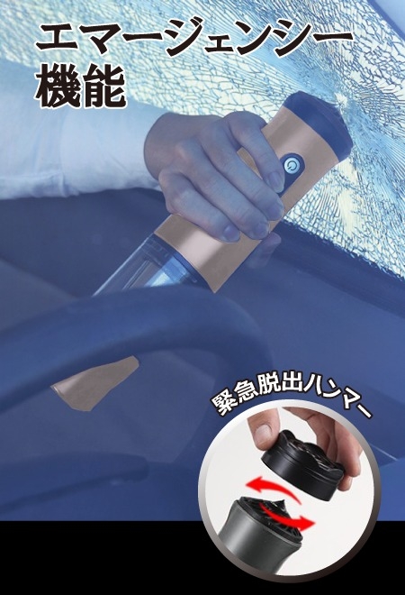 緊急脱出ハンマーがついているので、緊急時も安心😌