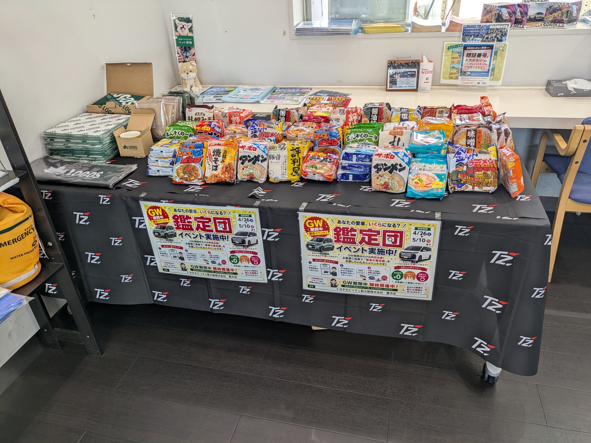 お車の査定額をズバリ予測していただき、ピタリ賞・ニアピン賞・参加賞でラーメンやLOGOSグッズをプレゼントいたします🎁
