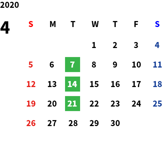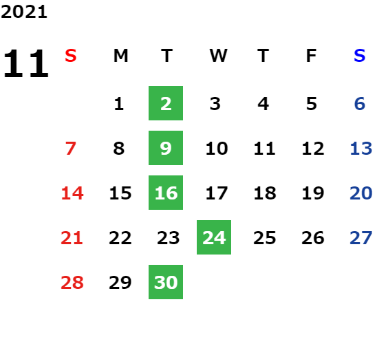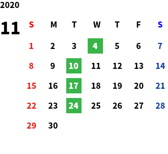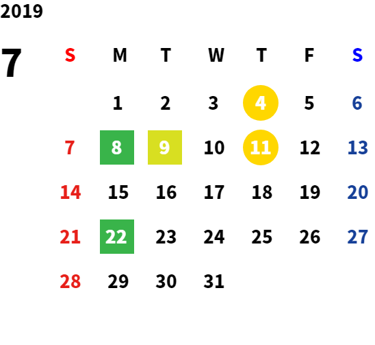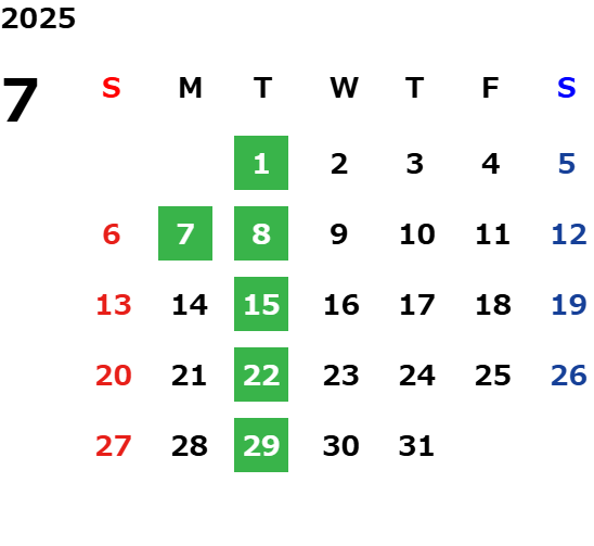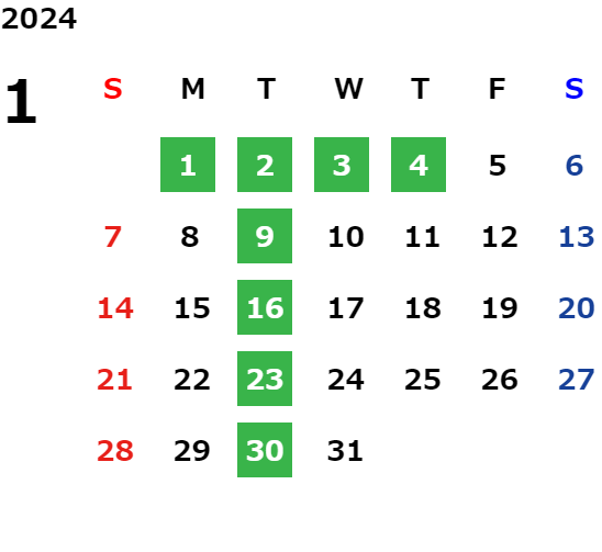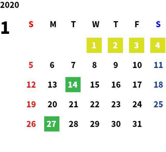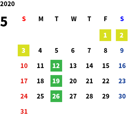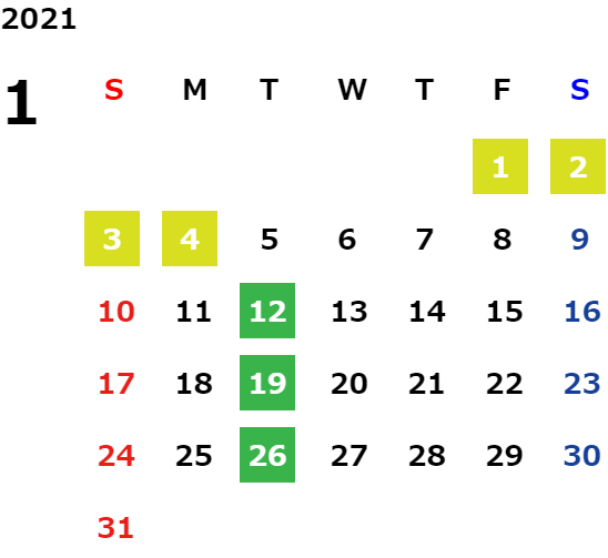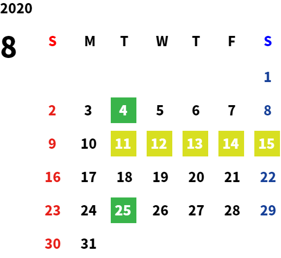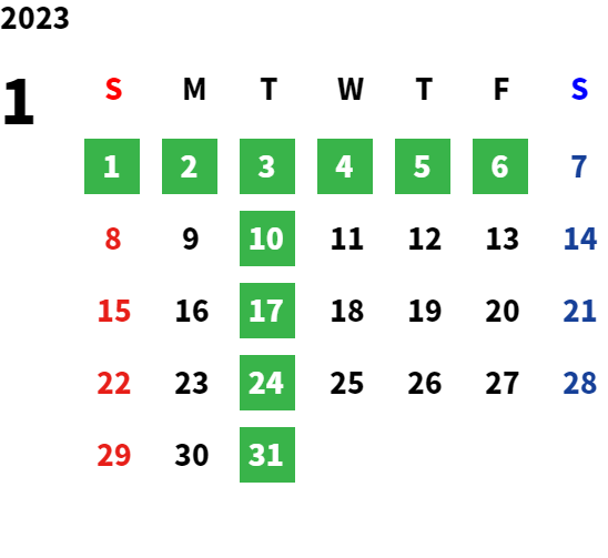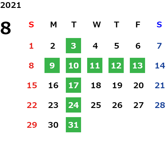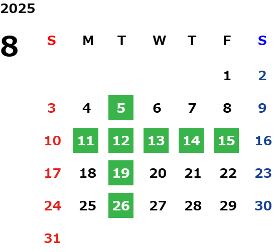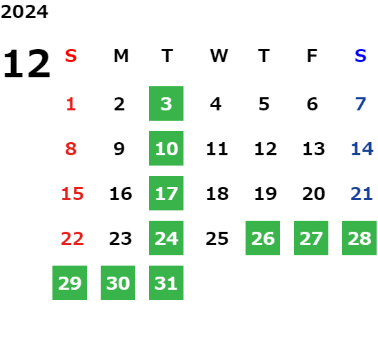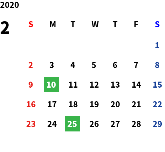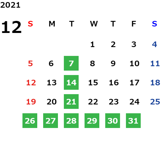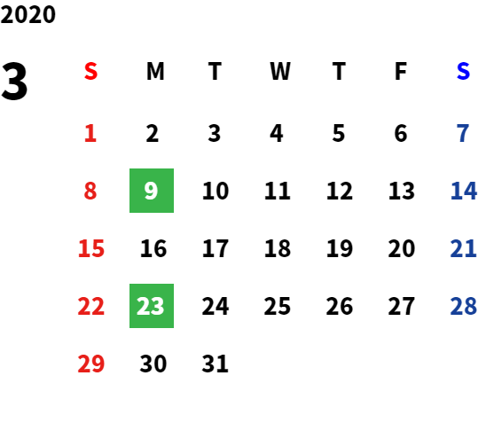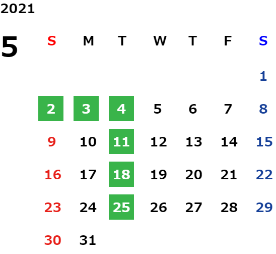 営業日カレンダー