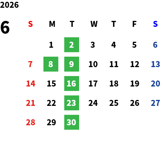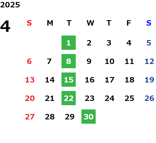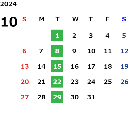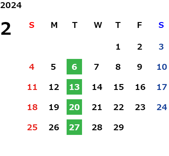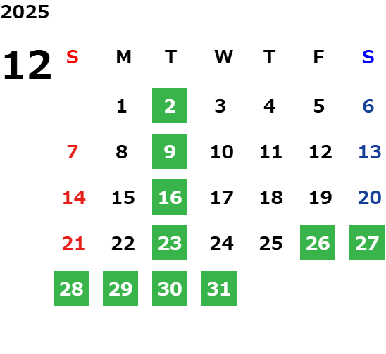 毎週火曜日(祝日の場合は翌日が休業となります)